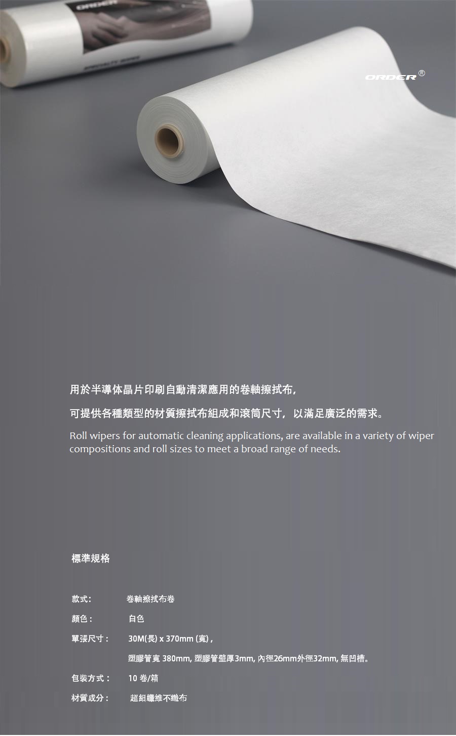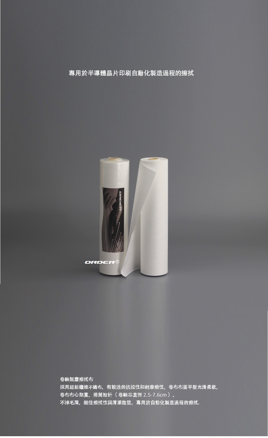 半導體薄膜精密印刷機專用清潔布卷的材質通常需滿足低發塵性、高潔淨度、化學相容性和機械柔韌性等要求,