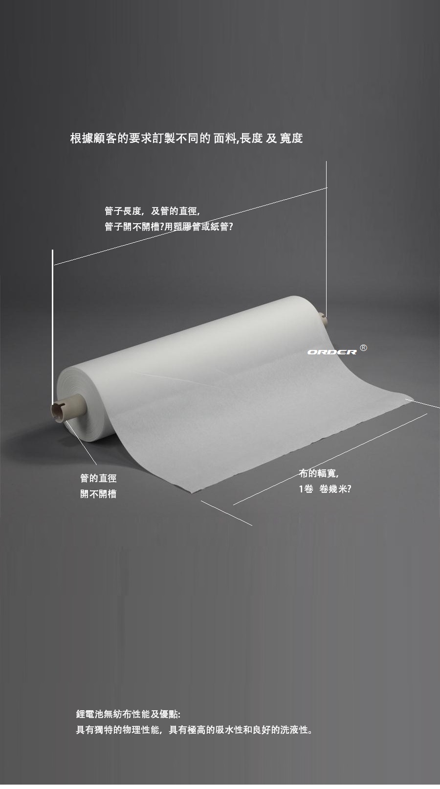 定制服務:我們提供全方位的定製服務,包括尺寸、顏色、包裝及不織布織物面料的選擇,以滿足不同客戶的特定需求和設備規格。