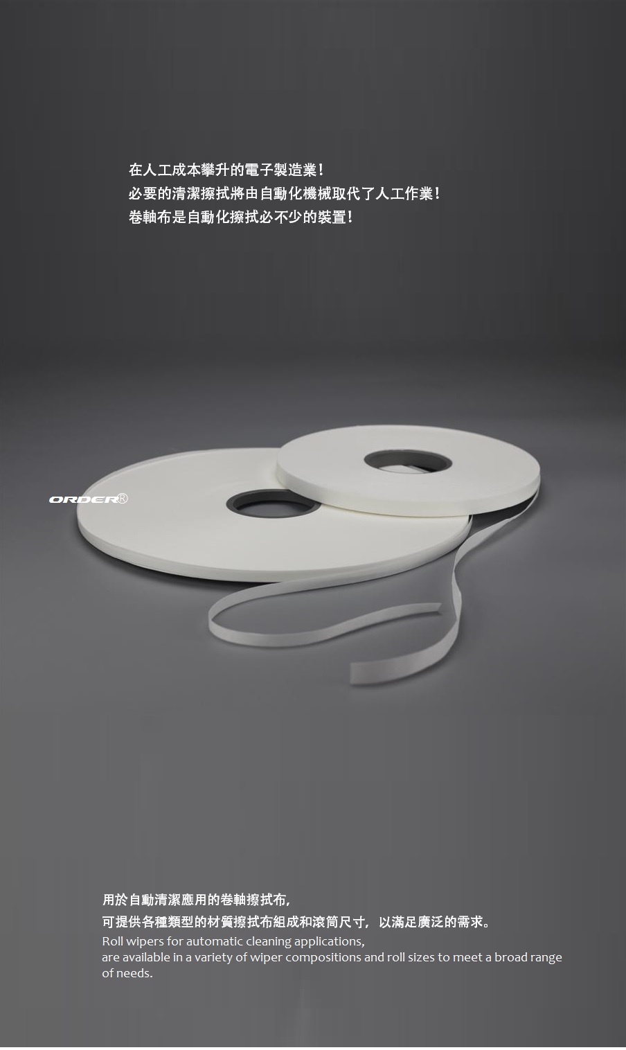 在人工成本攀升的電子製造業!必要的清潔擦拭將由自動化機械取代了人工作業!卷軸布是自動化擦拭必不少的裝置!