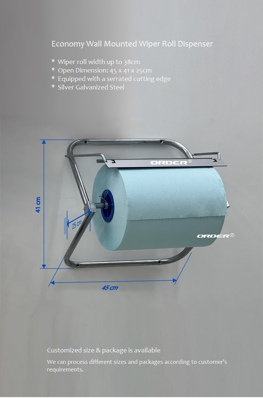 壁掛式組合式工業擦拭卷紙銀色鍍鋅大卷裝擦拭紙架
