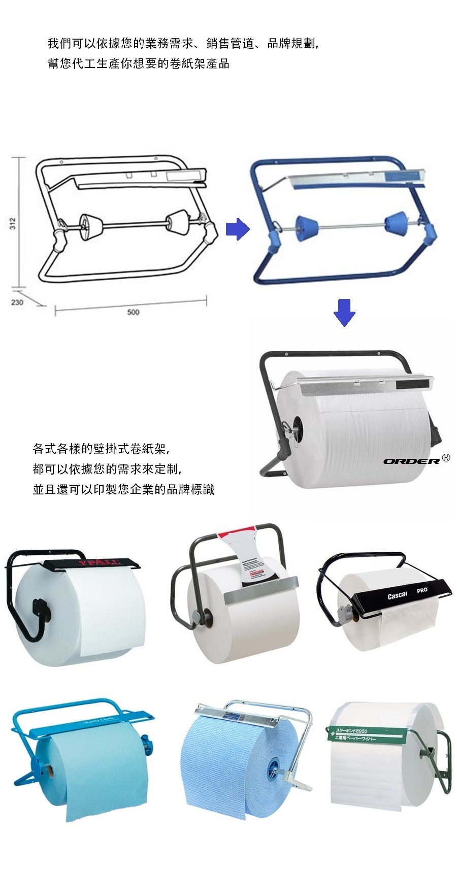 專業代工生產 壁掛式大卷裝擦拭紙架