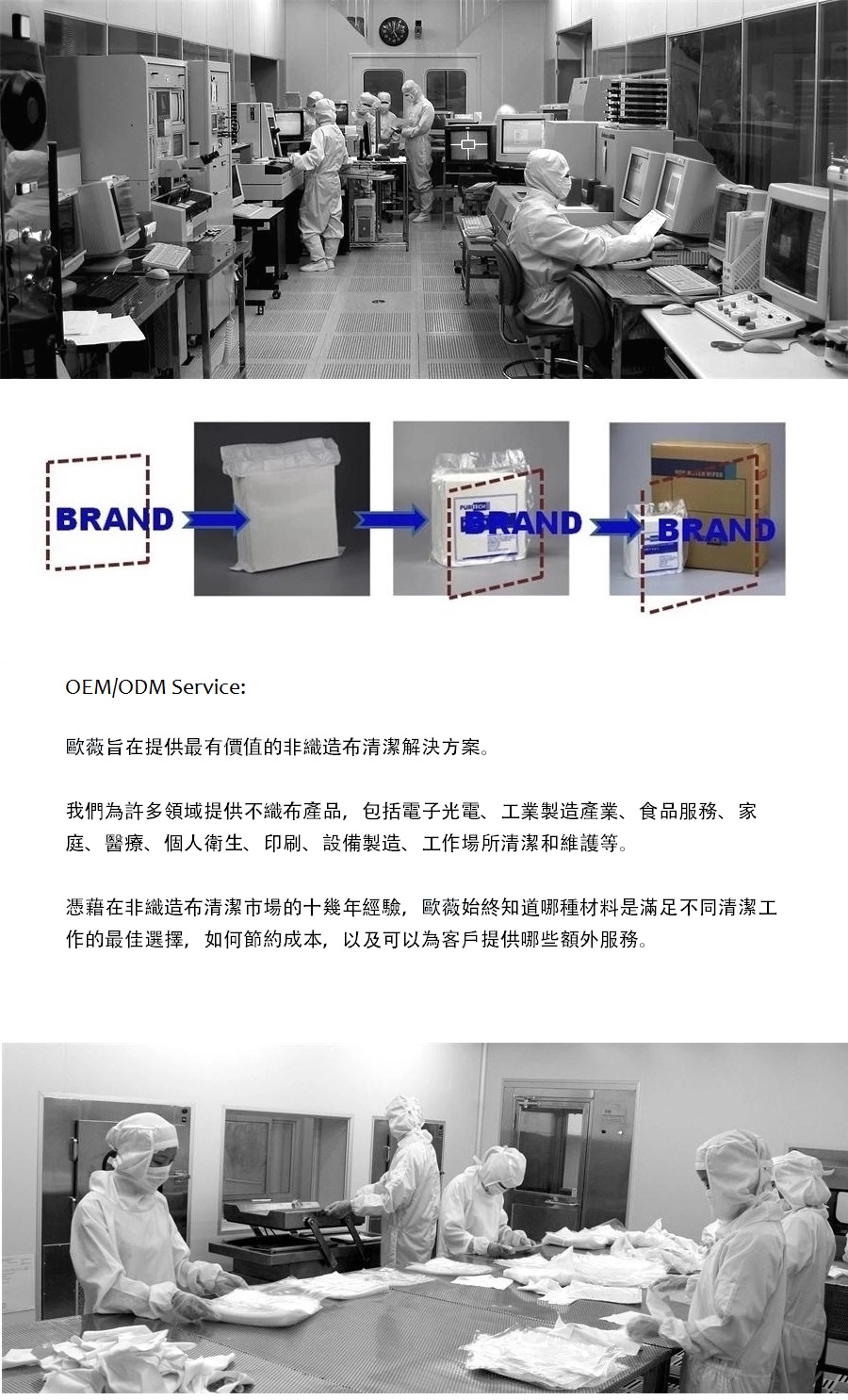 2、有20年以上製造、銷售工業、電子產業專用擦拭紙/布產品的豐富經驗; 專業不織布材料的應用,並庫存眾多的不同材料,以滿足不同客戶對不織布材料的需求選擇