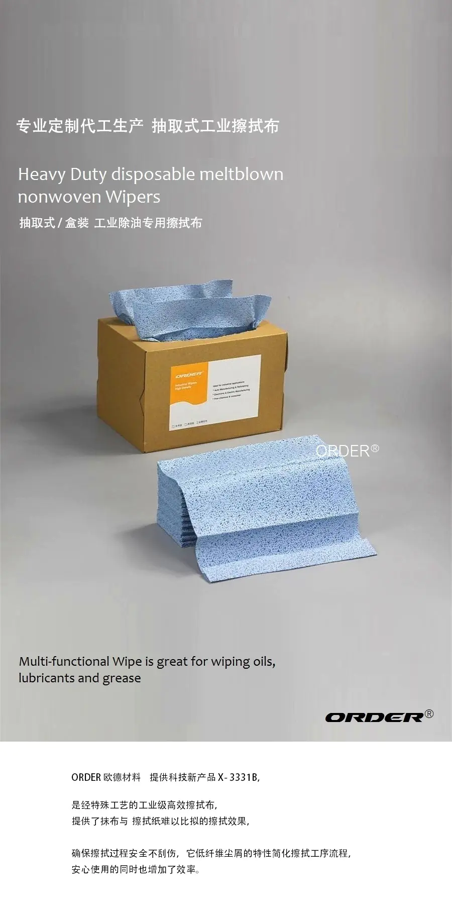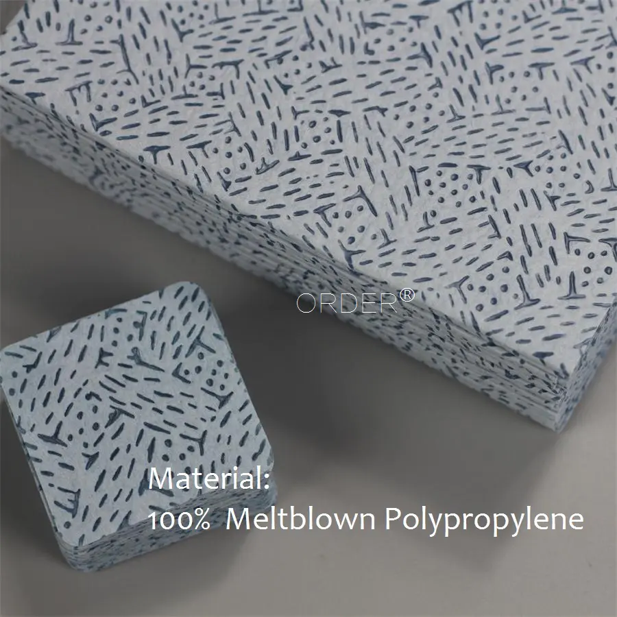 由高科技Meltblown Polypropylene製成,可迅速吸收自身重量8倍的油污; 可適用於油污、水及各種溶劑的擦拭;