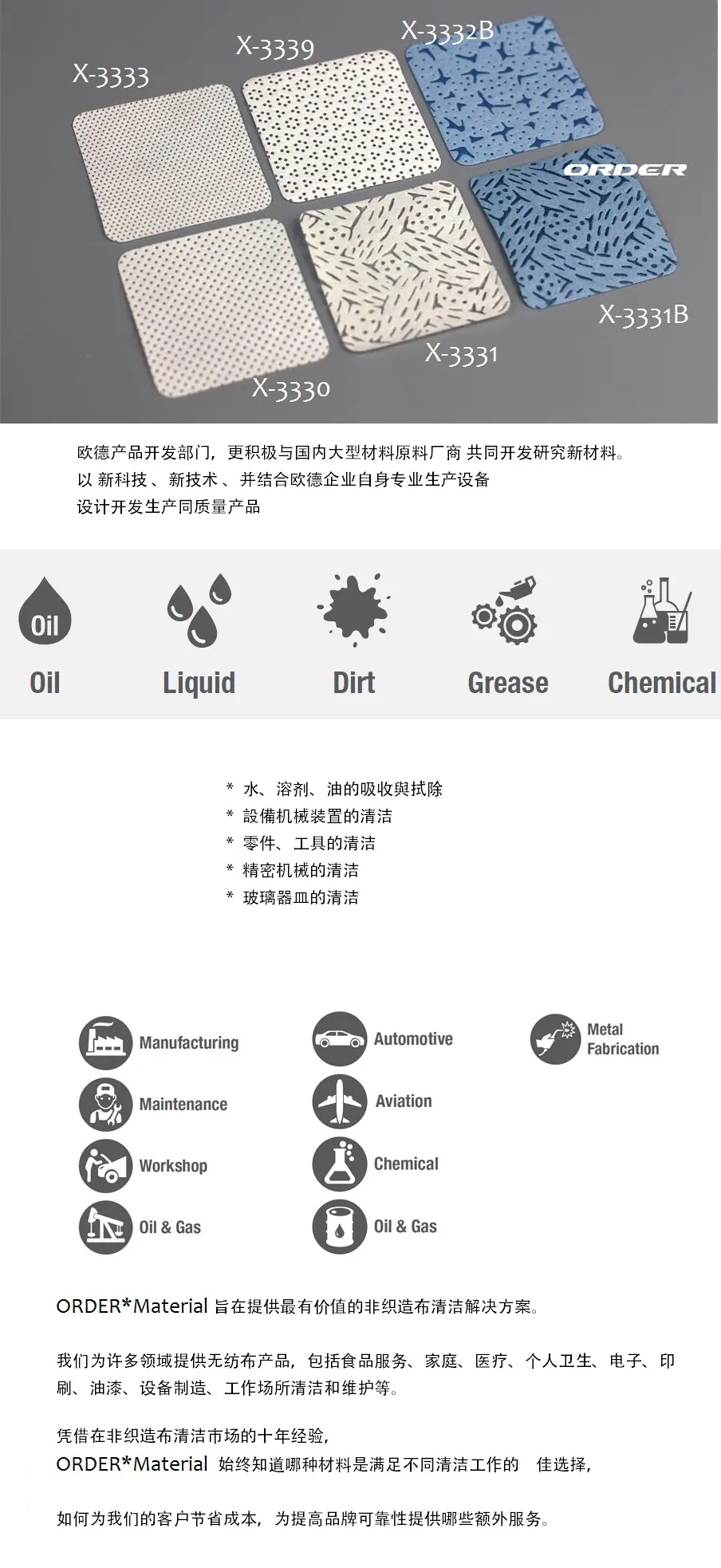 1、歐薇把產品品質放在第一位; 幫您實現高品質產品的夢想。 為全球高端客戶提供差異化高品質的抹布和服務。