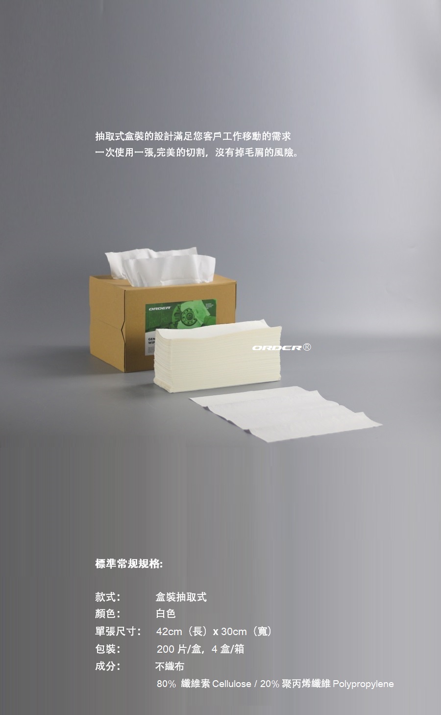 成分: 不織布 80% 纖維素 Cellulose / 20% 聚丙烯纖維 Polypropylene