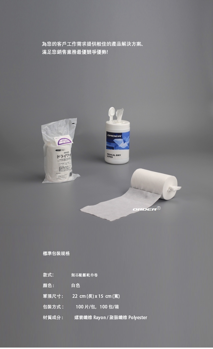 首頁 / 産品系列 / 醫療照護清潔擦拭布 / 醫療照護服務無芯點斷小卷桶裝不織布亁巾卷